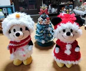 ミッキー&ミニーのChristmasコスチューム🎅☃ 発売日に発注しようとサイトのぞいたらなんともう在庫無しChristmas商品なので再入荷はないだろうとがっかりしましたが…それなら作ろうあみあみ始めて今完成です…注文出来たら2種類で5600円のところ100均毛糸🧶と差し目とボタンなど使用しても300円以下でできちゃった✌️ミッキーが雪だるま⛄️ミニ