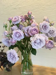 我が家の青バラ ノヴァーリス ■作品内容ほのかに甘い香りがとても魅力的です■こだわりポイント我が家のノヴァーリスは雨に弱いため、雨が降る前に花瓶に飾るようにしています。青バラですが薄い紫かピンクにも見えますが、とても綺麗で室内が華やかになります。実際に咲いているところです。木立ち性なのであばれることもなく、とても育てやすいバラで