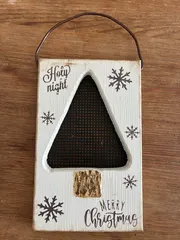 ■材料1×6材 鉢底ネットワイヤーデコボコベース塗料 ■作り方1×6材をお好みの大きさにカットして、ジグソーでツリーの形にくり抜きます。木の部分をデコボコベースでそれっぽく塗り塗り。凹凸をつけると樹皮みたいに♡土台はアイボリーかホワイト、木の部分はブラウンで塗り塗り❣️クリスマスっぽいステ