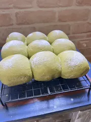 姪っ子とパン作り 夏休み中に一緒に作れたらって約束していたパン作り やっと予定が合いました😊 リクエストの抹茶パンとチョコパン求肥とチョコ入りで作りました 右手絆創膏貼っていたので手袋することに