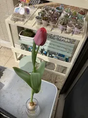 水栽培のチューリップ🌷綺麗に咲いてくれると嬉しいですよね😊💕 我が家のプランターに植えたチューリップは、まだ頭が少し土から出たくらいなので、まだまだ咲きません🤣気長に待ちます