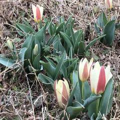 原種系チューリップ沢山咲いていますね🌷🌷🌷 一番に咲いてくれて嬉しいですね🤗❤️ 昨年の原種系チューリップ🌷プルケラペルシャンパール何処にいったやら… 腐葉土を足したりすると、球根の行方がわからなくなり、上手に管理しないともったいないですね😔❤️ 今年の品種は色が薄いので、そんなにですが初めて