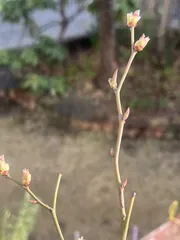 ブルーベリーに蕾がついてます 庭で育てていたブルベリー。実がつくといつも鳥に食べられていました。そこで去年の秋に鉢に植え替えてデッキで育てています。これからネットか何かで対策をしたいと考えています。今年こそ収穫したブルベリーをヨーグルトに入れて食べたいと願っています。
