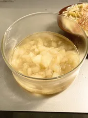桃ジャム? グラタンが食べたくて、作ってオーブンに入れて振り返ったら、週末に叔父からもらった桃に👀がいきました。 固いからまだ大丈夫と思っていたら、全て食べ頃になっていました。🍑 食べきれないので、半分ジャムへ。一日中留守番していた猫も遊びたくて暴れ始め、少し水分が多いですが完成です。 月曜日から、バタバタで