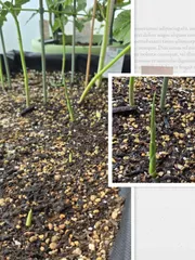 ベランダ菜園2025(生姜_②真ん中の芽も出た〜♪) 真ん中からも芽が出てきました〜♪そして、目が出た状態で植えたのも、芽が伸びました😊♡