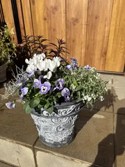 GWS春まで楽しめる寄せ植え 昨年はなが〜くたくさん楽しめた寄せ植えでした。今年もワクワクして参加しました😊色んな物が値上がりしてるせいか今回の花材はごく普通で🤏だけ期待外れのような😅普通のスッキリした寄せ植えでした。