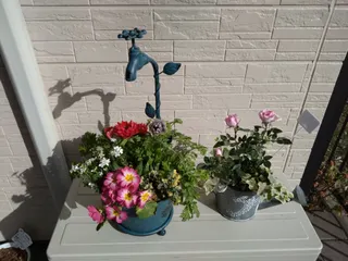 greenワークショップ 鶴ヶ島店での作品です。蕾だったのが、やっと花が咲き始めました。先生に教えて頂いたリキダスをあげたところ、とてもイキイキしてきました。