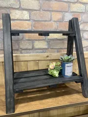 A型ステップラック A型ステップラック作ってきました😊新しい店舗でよくやるWSだって話でした🍀思ったより作りごたえありましたよ✨ノコギリ、丁番など工程たくさんありました😊後で玄関周りにオシャレに飾りたいな~と思っています🍀
