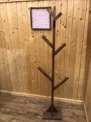 玄関に置いて花粉対策!!いいですね 👍 ̖́- 色々掛けられて便利ですね😊木目が綺麗に出ていて素敵です✨ 私も作りたいです☺️