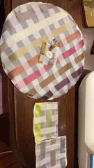 詰め放題のカーテン端切れでポジャギみたいな感じだったので、ティーコーゼみたいなのを作りました。おやつに活躍しそうです。