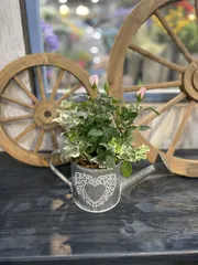 ブリキジョーロの寄せ植え 昨日参加したブリキジョーロの寄せ植えです💖予約取れなかったのに、こまめにチェックしていたら空きがあり、作ることができました🙌 バラは赤、黄色、ピンクの3色から選べましたが、私は迷わずピンク💕 センスの無さが恥ずかしいですが、自分で寄せ植えした物は可愛いです☺️ お手入れ