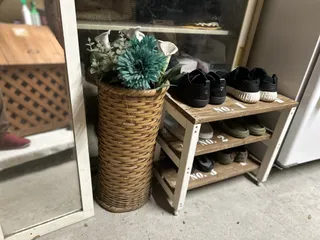 シューズラックこの様に使うのも良いですね🤗シューズラック作っても玄関に置けないしな〜と思って作りませんでしたが、この様に使えるなら作りたくなりました🤗