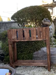 ハイスタンドプランターカバー③ 2月末に作って やっと天気も良くなり外に出しました😊今日は暖かい!今回は3台目(1つは主人作品)WSを始めたきっかけの作品です🪚🪛WS2回目の超初心者🔰で作った時は5時間くらいかかり泣きそうになってた思い出が😭今回は時間内にできて良かったです😅💕 設置予定場所を変更、庭を作品持ってウロウロ