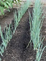 ■育てた野菜種から育てている長ネギです■工夫ポイント鉛筆くらいの太さになるまでパレットで育てました 畑に植え替え、先日一回目の土寄せをしました 素人なので良くわからないままに育てていますが大きくなってくるのが楽しみです
