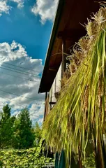 ハロウィンキャンペーン2022【稲刈り】 うちのにわにはにわにわとりが…ではなく。一坪程の田んぼがあります。18年前に家を建てた時、ビオトープ兼メダカのすみかとして作ってもらったのですが、それから毎年ままごとのような田植えと稲刈りをしてきました。明日から雨のようなので今日稲刈りをすることにしたのですが、今年はどういうわけか稲が倒れてしまい稲