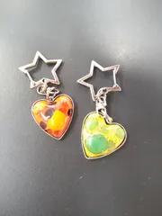 七宝焼きのキーホルダー 息子が通う工業高校でものづくり講習会があり、娘と参加しました(^^)黄色ベースは娘、オレンジベースは私の作ったものです。薬剤をモリモリしたらガラスやビーズを配置して焼き上げます。出来上がるまでの工程、すべて生徒が教えてくれてすごいわー!と感心するばかりでした🤔