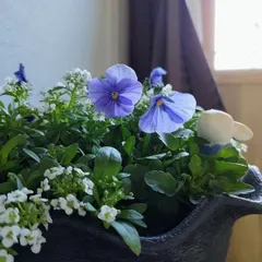 黒ポットで放置していたパンジーを植え付けました 大晦日に買い出し中たまたまみつけ小さなお花屋さんの店先でピピピーときてしまったパンジーさんふたつ(一番下の)かわい~😍!✨もう数時間で年が明けるというのに買ってしまった 今日は久しぶりに暖かいのでパンジーさんとアリッサムを追加してブリキの鉢に植え付けましたパンジーさんが満開になるともっと可
