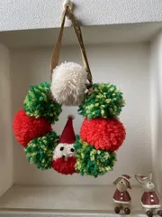 毛糸ボンボンのクリスマスリース🎄 昔子どもと作った毛糸のボンボン🧶リース我が家のクリスマス🎄の飾り付けが始まりました✨