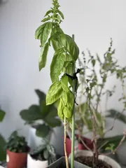 家で採れた種からのバジル。いつまで頑張るか観察します😁上部に花が有り種採れたらいいかな😊