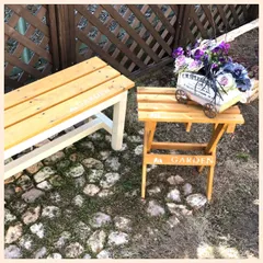 初投稿〜♪ 少し前に作ったベンチとテーブル。家でステンシルしてみました🦜これから今更だけど防腐剤を塗ろうと思います。やらないよりはマシだよねきっと😅