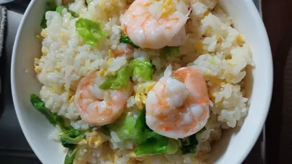 エビレタスチャーハンを作りました🦐😊プリップリのエビ、ビジュいいじゃんって今年風に言ってみました🤭手作り鶏油もこれで使い切りました☺️細かくしたエビも入っていて美味しすぎておかわり🍚食べ過ぎました😋🫄