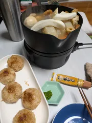 今夜のおでん🍢お供は焼きおにぎり🍙手作り柚子胡椒 おでんって作りすぎちゃうので2人前分くらい義母へお届け😁