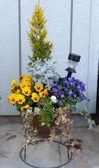 ビオラと白妙菊メインの寄せ植え 植えた時よりも沢山のお花が咲いて賑やかになりました😊🎶