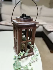 アンティーク風木製ランタン 100均の造草を飾ってみました。作る工程は、とても苦戦しました💦出来上がってみて、なんだかとても愛おしい作品です。