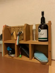 壁掛けシェルフ 今年2回目のワークショップ。玄関に置くつもりで去年に予約してました。思った通りの使い易さ。キーフックの棒が少し歪んでいるのは、内緒🤫