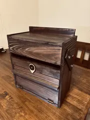 パカっと便利なキャンプ飯 クッキングボックス🍳 クッキングボックスを作ってきました‼️工具入れにするつもりです😊 細かいパーツが多く、結構大変でした。ブラックとダークブラウンの2色でアクセントもつけれて、オールド感が出て素敵にできました!