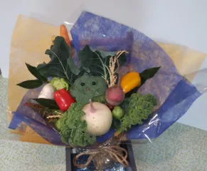 ベジブーケ💚 こちらも フラワーフェスティバルで作ってきた作品です☺️ お野菜で作る花束 "ベジブーケ "です🥰 朝 畑で収穫された野菜たちを花束のように 束ねていきます😃 ブロッコリーは今年の干支" 兎🐰" 葉を耳に見立てます まあるい蕪はお月様あとはパブリ