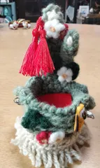 ミニルルちゃん用の🎍門松バスケット出来上がり 毛糸で編みあみ飾りやチェーン⛓️💥の取手付けてミニルルちゃん中に入れてお出かけします👘💕