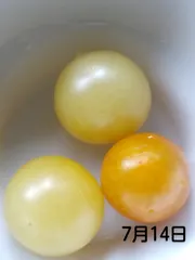 果皮がとっても薄く、とろけるような食感のミニトマト🍅赤はツヤツヤお肌ですが、黄色は、黒い点々が付いてしまいます。原因は何なのでしょうねぇ🥺