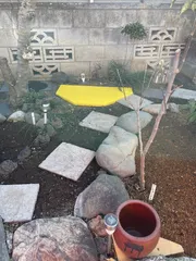 庭に差し色を入れたらどうかな?という試み ↑after↓before頂き物のタイルを無造作に置いてました。飛び石の隙間を縫うように置ければと、24㍉厚合板を水性スーパーコート塗装した材を先ずは一枚置いてみました。以前、家庭菜園の一角に置いてたモノです。上塗り塗装してます。追ってあと数枚置いてみようかな、と考えてます。