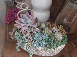 多肉寄植え 昨年最後の師匠、アトリエクラスのレッスン💞今年の干支にちなんでウサギ🐰さんメインの寄植えのはずが、大きなエケベリアに心奪われ(名前忘れた💦)こっちがメインに鳴りました😁まぁ~うさぎ🐰さんはそのうち伸びてくるでしょ😆😆 ブロウメアナ💞エケベリアの足元にうさぎ🐰さん4株入ってます💞 見えないけ