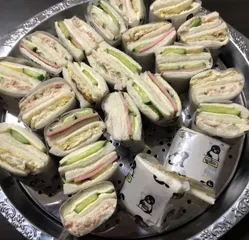 これって レシピか?と思われそうですが私が最近知って「もっと早く知りたかった」と思ったので。 ワックスペーパーをサンドイッチの大きさに合わせて切ってぐるりと一周まいてテープでとめる。です。 たったこれだけの事で⚪︎時間が経ってもパンが乾燥しない⚪︎サンドイッチが崩れない⚪︎食べやすい⚪︎「