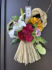 wsで作った香り付きしめ縄に、小物をプラスして、玄関に👍