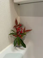 洗面所もお正月準備 け玄関には、しめ飾り!そして洗面所もお正月用に👍