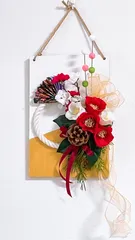 お正月しめ飾りボード 🎍新年 明けましておめでとうございます🎍今年も宜しくお願い致します(*ˊᗜˋ*)/ WS作品のしめ飾りボード自宅にてプチアレンジさせて頂きました🏠🎨自宅にあったオーガンジーリボンを足して、写真だと黄色く見えちゃうボード下部分は100均塗料のゴールドを塗ってお正月感🆙実物はちゃんとキラキラに