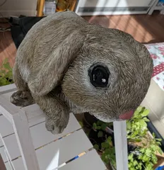 うさこちゃんの👀目ペイント ガーデンにいるうさこちゃんが焼けて、可愛くなくなってきたので、ペイントしてみました😄 目は黒に、ハイライトを入れ、鼻はピンクに… 可愛さ復活して良かったです💞