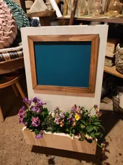 黒板付フラワースタンド 先日のWSで作った黒板付フラワースタンドです。 枠や黒板のペンキを何色にするかギリギリまで悩みました🤔!