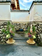 門松作り 門松を作りました〜。もうかれこれ10年くらい毎年作ってて、ここ数年でやっと作り方を確立できたんですよ。まずは疲れてない体力あるうちに竹を切ります。竹専用の鋸で節のど真ん中を出来るだけ斜めになるように頑張ります。コツは「無」になること(笑)節の所で切ると、切り口が笑った口のように見えるので笑う門には福