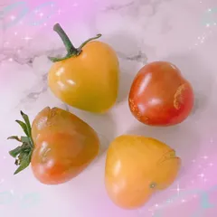 わくわく野菜作り賞 ハートのプチトマト 🐰🐰さびうさ🐰🐰ハート型のプチトマトが採れました🍅なかなか綺麗に採れず、割れてしまう方が多い中、黄色のプチトマトは色も形も綺麗なまま採ることが事が出来ました💖