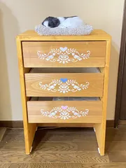 キッチンシェルフ 三連休の休みにキッチンシェルフを作って来ました。初めはキッチンに置こうかと考えていましたが、来週WSで野菜ストッカーを作るので、こちらはお部屋に置く事にしました。消しゴムハンコ関係の物が溜まってきたので、それを整理しようと思い、このキッチンシェルフにステンシルをして使う事にしました。ヾ(๑╹◡╹)ノ