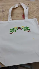 買い物して、エコバッグのステンシルをして来ましたよ🤗梅狩りツアーい行ったSquareの方も参加していて、楽しい時間でした🤗黄色の塗料がついてしまったので🤣家に帰り、どんぐりの絵を選んだので、その塗料をごまかすのに、マックロクロスケを書いてみました🤭