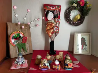 和布で作った七福神と、手作りリースです。七福神、七体作るのやっと出来ました😊