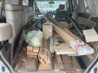 DIY材料ー大量ゲットだぜい‼️ 会社の先輩から貴重な木材🪵を頂きました。thank youでーす。 最近私がこんなの作りましたーって周りの方に言い続けてたらなんと!今度木材あげるからウチにおいでよ!うぉーーー。神です。神です。神降臨!その先輩の倉庫はとっても広く天井も高い!その中には大工道具、電動工具、農業機械、凄かった