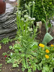 オルラヤが咲いてます♪風にふわふわ〜 グンマー地方、最高気温35℃超え。一気にバラが咲き始めました。アイスバーグのアーチ。 黄色のバラはグラハム・トーマス青いデルフィニーム、涼そう😊オルラヤはこぼれ種で毎年咲いてくれます。咲きまくってます。そこそこに抜かないと歩くとこ