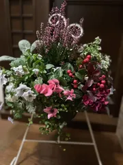 春まで楽しめるハンギングバスケット🌼 ハンギングバスケットの講習会に参加🎶🍀 ガーデンシクラメン 2個チェッカーベリー 1個カルーナ 1個フリル咲き小輪パンジー 1個ビオラ 2個シルバーレース 1個ワイヤープランツ 1個シロタエギク 2個アリッサム 2個 13個の株を適正に