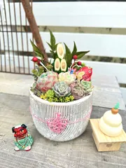 おめでとうございます🎉ふんわり優しい感じの寄せ植えで素敵です✨